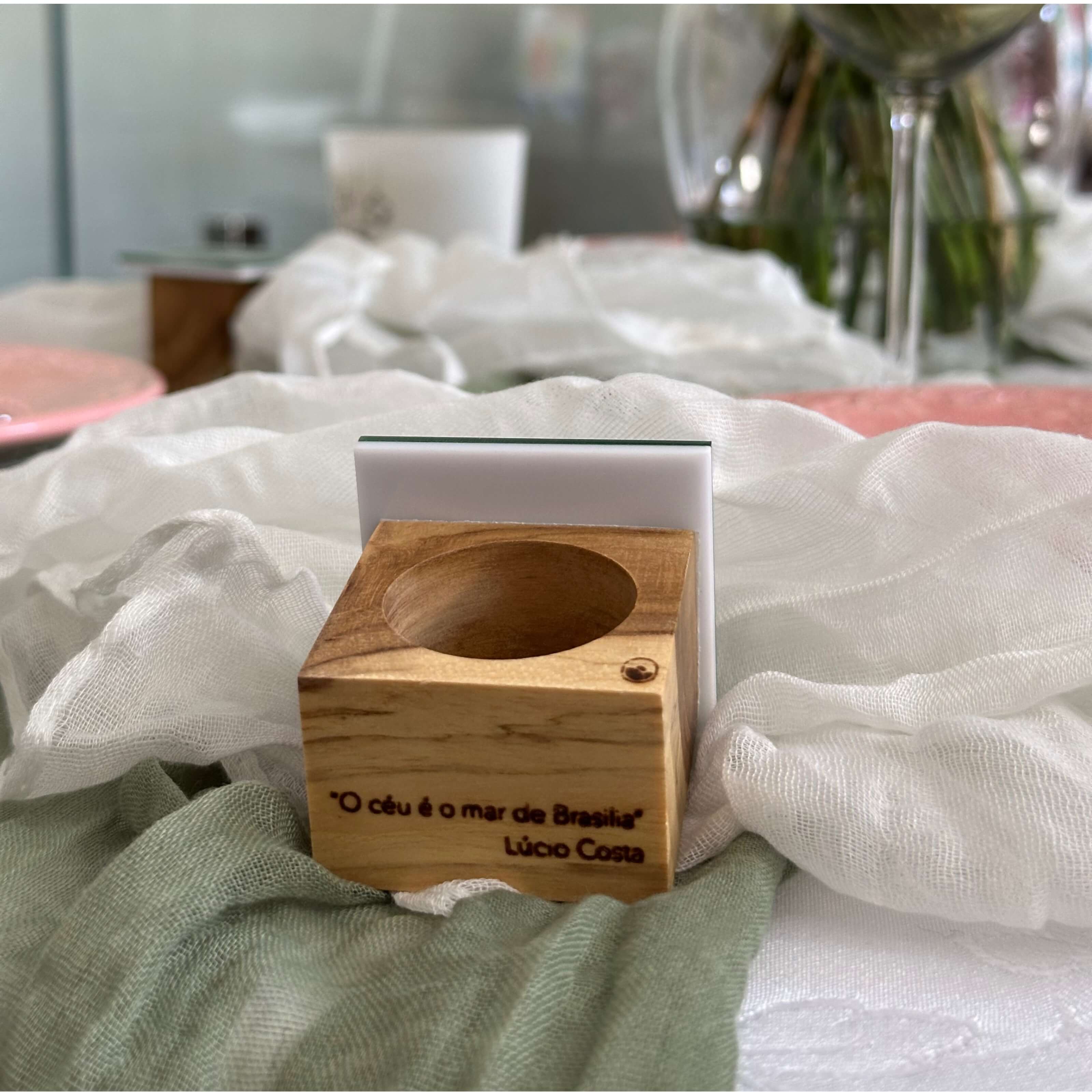 Customize the wooden ring of your napkin ring with a name, word, or short phrase, creating unique pieces for your table or event.
